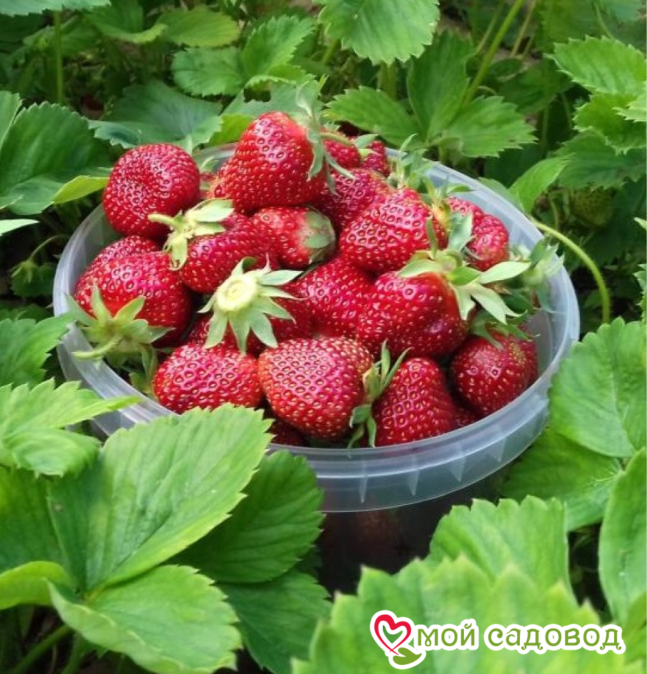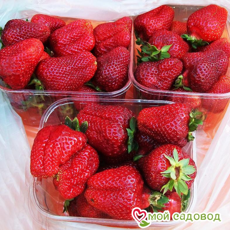 Усеченно-конические ярко-красные ягоды очень крупные (35-75 г). Мякоть при окончательном созревании очень сладкая. Отличная устойчивость к земляничному клещу и другим заболеваниям и вредителям.