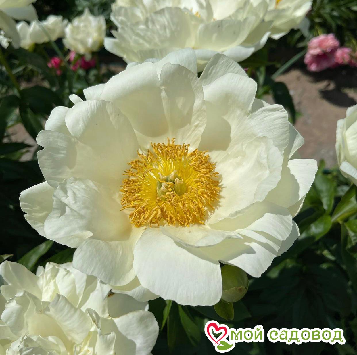 Яркий Гибрид — красавец Прейри Мун. Невероятного размера цветы с двойным рядом лепестков напоминают огромные ромашки. Цветок диаметром 18 см, светло-жёлтый, позднее почти белый. (В полуроспуске нежно-салатовые). Тычинки жёлтые. Аромат слабый. Есть боковые бутоны. Листья удлинённые, полуглянцевые, тёмно-зелёные. Куст высотой 65-80 см. Срок цветения средне-ранний. Место посадки Для посадки пионов понадобится защищенное от ветров место с хорошей освещенностью. Сорта светлой окраски, а также пионы с простыми и полумахровыми цветками можно посадить на частично затеняемом участке, это продлит цветение и защитит цветы от выгорания. Почва для посадки Залог успешного цветения пиона в будущем — это подготовка почвы! 1. Подготовка ямы — 70*70 см на скудных песчанистых и торфянистых почвах — 50*50 см на плодородных, окультуренных почвах.