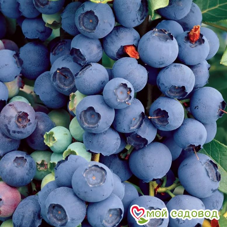 ☀️ Высаживать саженцы голубики с закрытой корневой системой можно на протяжении всего вегетационного периода (весна-лето-осень). Посадку голубики весной в открытый грунт следует проводить после исчезновения угрозы возвратных заморозков, когда воздух прогреется до 10-15⁰С, но до распускания почек (в апреле-мае). Таким образом, саженец будет иметь достаточно времени, чтобы укорениться и адаптироваться к новым условиям. Осенью к посадочным работам приступают в конце сентября-начале октября.. после того, как растение закончит вегетацию и останется без листьев. При этом оно будет иметь в своем распоряжении 3-4 недели до устойчивых морозов для укоренения. Высокорослая голубика «Блюкроп» — от других высокорослых сортов отличается обильным плодоношением и крупными ягодами. Ягода успешно адаптируется в разных климатических условиях, не теряя своей высокой устойчивости к заболеваниям. Наименее чувствительный к кислотности почвы и подкормкам сорт Блюкроп стал популярен среди садоводов-любителей и в коммерческих хозяйствах. Плодоносить растение начинает на 3–4 году. Ягоды тёмно–синего цвета, слегка сплющенные, крупные, имеют ярко выраженный налёт светло-голубого цвета. Достигают 1,7–2 см в диаметре.  Куст требует регулярной обрезки, отсутствие которой приводит к снижению урожая. ПОСАДКА Перед посадкой полейте растение в контейнере и дайте ему постоять, чтобы можно было легко вынуть саженец из контейнера не повредив корневую систему. Подготовьте посадочную яму глубиной и шириной примерно 0,5 м. Добавьте в неё кислую песчано-земляную смесь (лучше если это будет специализированный грунт с повышенной кислотностью рН) и перемешайте с почвой, вынутой из ямки. Можно улучшить структуру почвы, добавив кислого торфа. Посадите растение так, чтобы оно оказалось на несколько сантиметров ниже, чем оно сидело в горшке. Слегка уплотните землю вокруг саженца и еще раз полейте как следует. Для предотвращения испарения влаги покройте почву слоем мульчи (опилки, кора) толщиной 5-8 см.  Это позволит решить и ещё ряд проблем. Во-первых, слой мульчи позволит избавиться от сорняков, во-вторых, отрегулирует водно-воздушный и температурный режим верхнего слоя почвы (т.е. почва не пересыхает и не перегревается), в третьих, он улучшит освещённость куста, в четвёртых, поможет бороться с болезнями.
